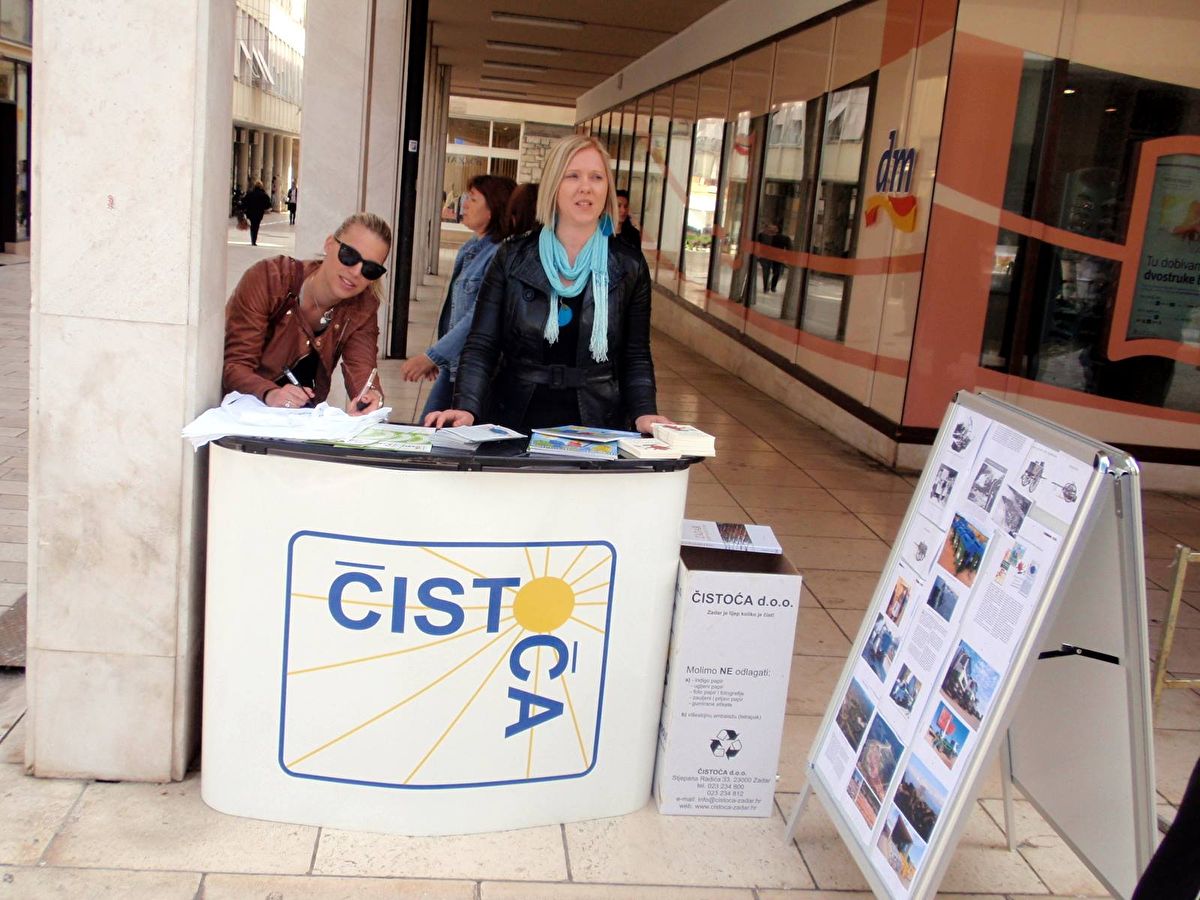 Čistoća d.o.o. i Udruga „Eko- Zadar“ u petak 24. travnja 2015. organizirali su treći po redu „Dan Čistoće“ na Narodnom trgu. „Dan Čistoće“ manifestacija je u sklopu zajedničkog projekta udruge i komunalne tvrtke „Reciklirajmo zajedno“, te je to bila prilika da se građani i građanke upoznaju sa sadržajem projekta, dobiju informacije o novostima na području odlaganja otpada, posebice o odvojenom odlaganju različitih vrta otpada. Na info štandu mogli su porazgovarati s djelatnicima Čistoće i članicama udruge koji provode ovaj projekt, te dobiti brošuru „Vodič o pravilnom odlaganju otpada na području Grada Zadra“. Za djecu su bile pripremljene bojanke, kao i slikovnica „Praktični savjeti Eko Mace“ ali i zabavno-poučno druženje s likom iz spomenute slikovnice - Eko-Macom. Predstavljeno je i novo vozilo koje olakšava posao vrijednih pometača – električni bicikl za prikupljanje komunalnog otpada.