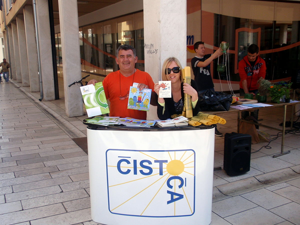 Sve moguće informacije o očuvanju prirode, sakupljanju, odvajanju i ponovnoj upotrebi otpada, radionica starih igračaka, kolači s porukama, na podu traka s bojankama, glazba, ples, flash mob, besplatni zagrljaji...