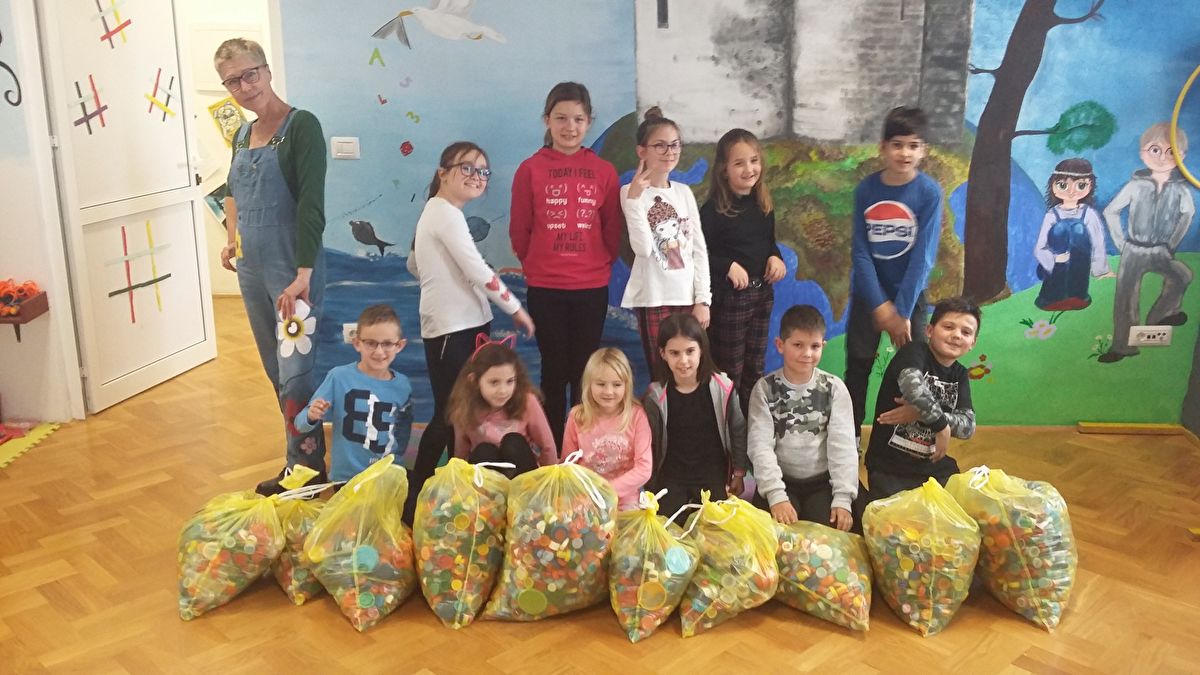 Učenici 1.c,1.e, 2.a i 2.d OŠ Šime Budinića razveselili su nas posjetom i donesenim čepovima jer, kako kažu, kad pomažemo drugima osjećamo sreću. Ovaj je put bilo puno sreće na jednom mjestu.