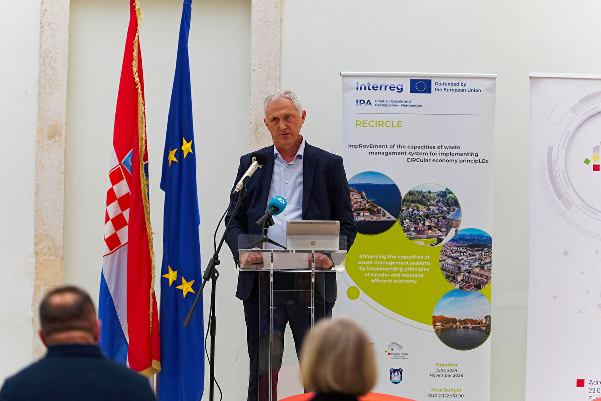 Prisutne je pozdravio i direktor Čistoće d.o.o., John Ivan Krstičević, koji je naglasio kako „projekt RECIRCLE, u kojem je Čistoća d.o.o. Zadar vodeći partner, predstavlja još jedan važan korak prema jačanju sustava gospodarenja otpadom i provedbi načela kružnog gospodarstva. Čistoća Zadar s ponosom sudjeluje u ovom zajedničkom naporu kojim želimo unaprijediti način na koji postupamo s otpadom, ne samo u Zadru, već i u širem području. Ukupna vrijednost projekta iznosi 2,32 milijuna eura, što potvrđuje ozbiljnost naše zajedničke namjere i snagu suradnje među partnerima iz Hrvatske, Bosne i Hercegovine i Crne Gore. Kroz projekt ćemo nabaviti specijalizirana vozila, opremu te nadzemne i polupodzemne spremnike za odvojeno prikupljanje otpada, koji će biti postavljeni na 29 lokacija u gradu Zadru. Time ćemo povećati operativnu učinkovitost, a građanima omogućiti jednostavnije i kvalitetnije odvajanje otpada, što je temelj kružnog gospodarstva kojem svi težimo. Dodatno, uvođenjem tehnologije otpadomjera, podići ćemo razinu učinkovitosti i transparentnosti našeg sustava. No, oprema je samo jedan dio ove priče. Ključnu ulogu imaju i edukativne aktivnosti. Naša je odgovornost ne samo osigurati infrastrukturu, već i graditi svijest, jer bez informiranih i osviještenih građana nema dugoročnog uspjeha u gospodarenju otpadom.“